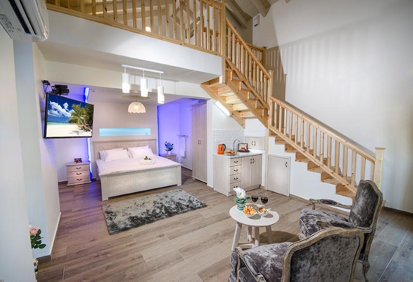 2 סוויטות פאר (עם בריכה פרטית לכל סוויטה) שעוצבו תוך מחשבה עיצובית רבה וכוללות קומת גלריה לאירוח משפחות וקבוצות